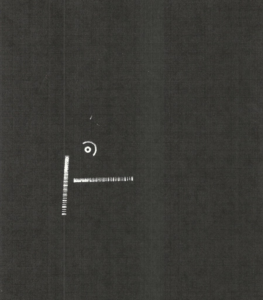 This above image was taken by M4008 during revolution 15. Note how the staggered lines can still be individually distinguished near the bottom part of the left hand line, along with the marks near the center of the photograph. The perpendicular layout allowed photo interpreters at the Air Force Special Projects Production Facility (AFSPPF) to determine resolution in for both cross-range (off-nadir, perpendicular to orbital motion) and down-range (following orbital motion, aka which direction the vehicle was heading).