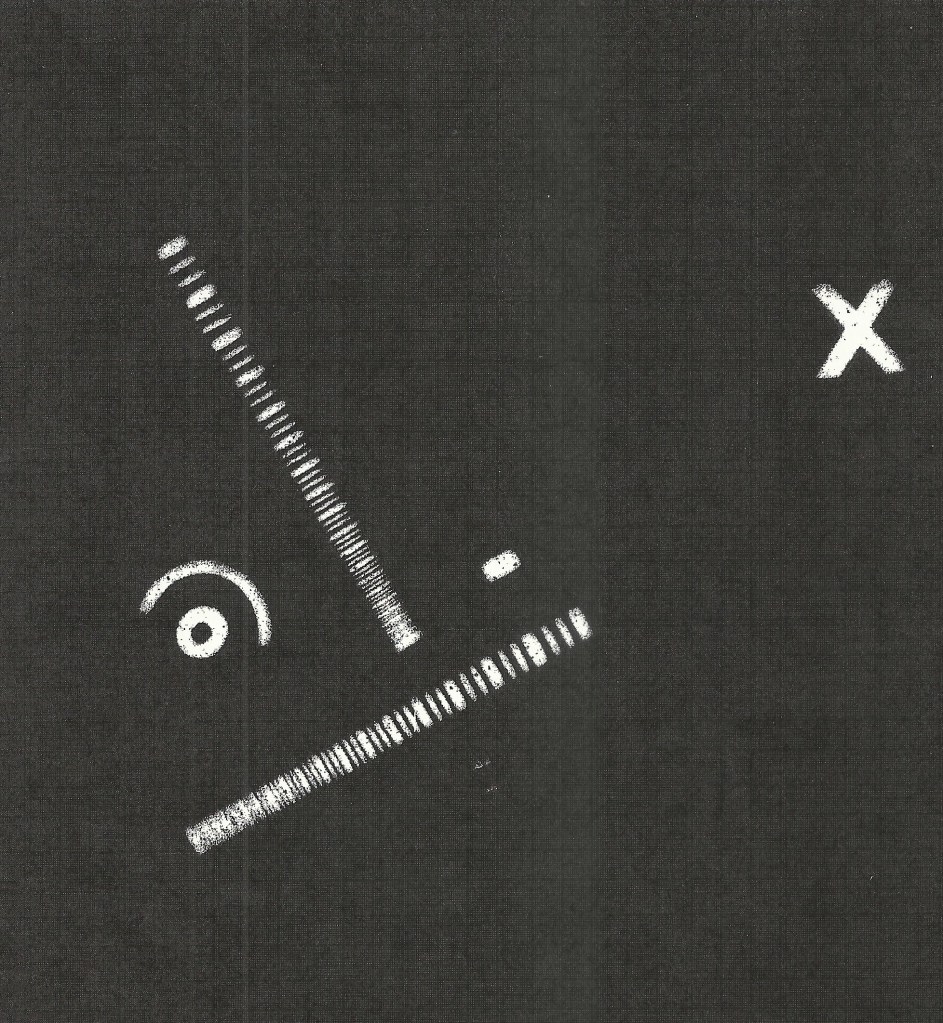 The weird broken lines are CORN Tri-bar targets set up in a “T” pattern; the half-circle “evil eye” is a CORN bullseye target. And the “X”? Probably is where the Goonies’ treasure is buried.