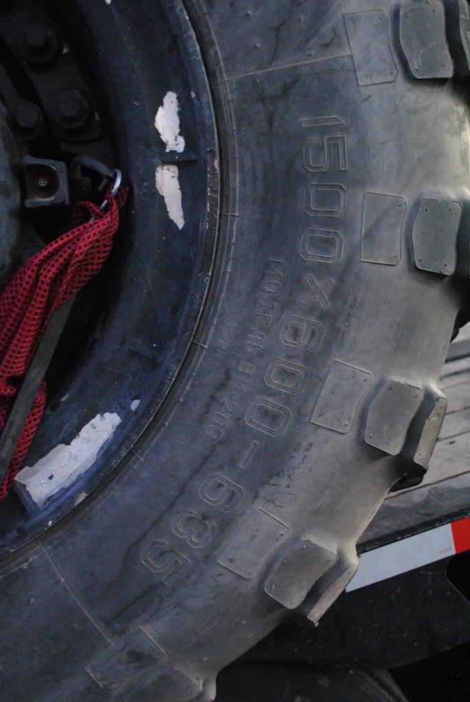 There was one other person there taking photographs like I was. We both laughed at our intense interest in this tarp-covered surprise, both knowing it was out-of-time and definitely out-of-place. He pointed out the tires, shown here, and we guessed they were original based on the Cyrillic lettering on them.